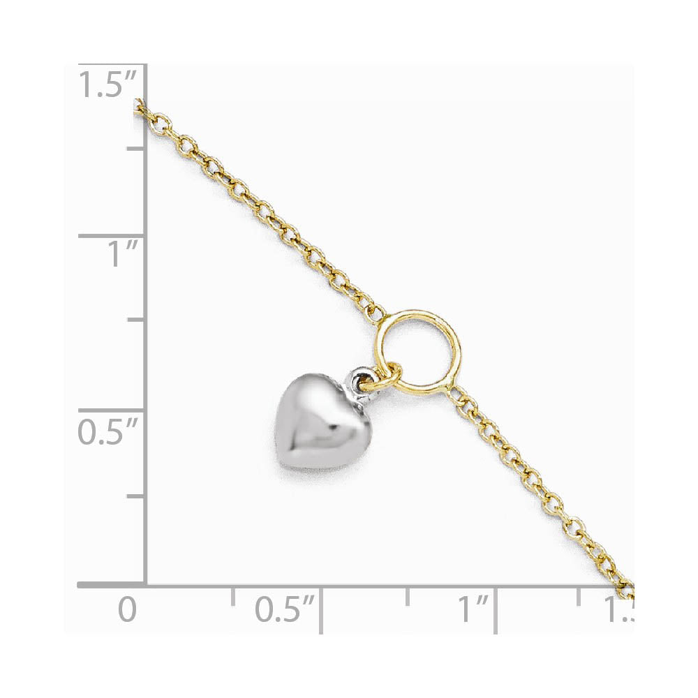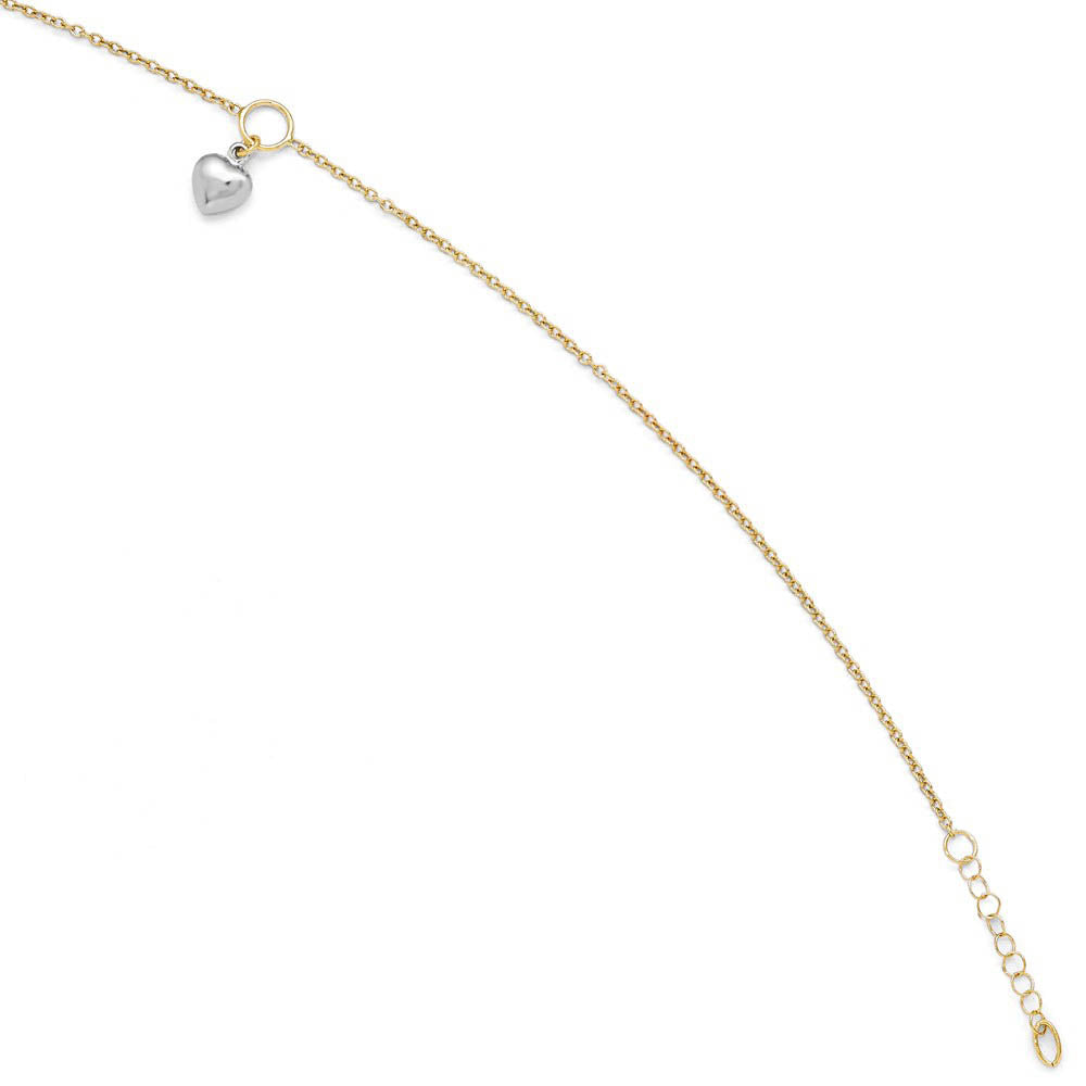 14k Two Tone Gold Dangling Puffed Heart Anklet, 10-11 Inch