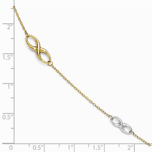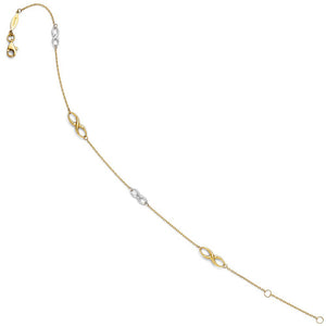 14k Two Tone Gold Polished Infinity Station Anklet, 9-10 Inch - Black Bow Jewelry Company