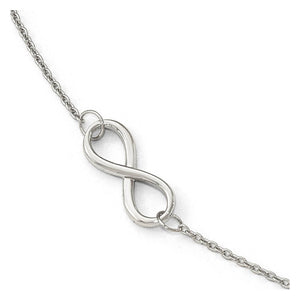 14k White Gold Polished Infinity Station Anklet, 9-10 Inch - Black Bow Jewelry Company