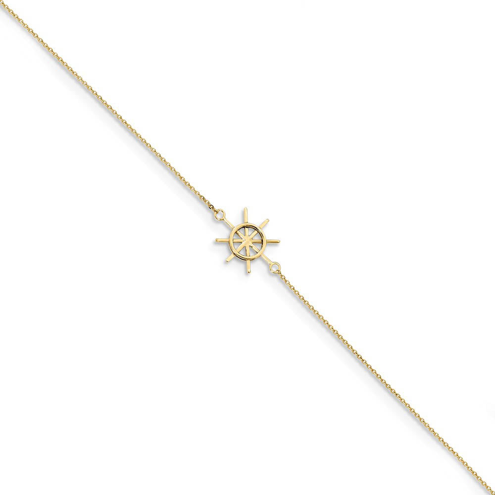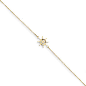 14k Yellow Gold Captains Wheel and Cable Chain Anklet, 9-10 Inch