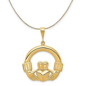14k Yellow Gold Claddagh Necklace, 25mm - Black Bow Jewelry Company