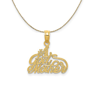14k Yellow Gold Cursive #1 Godmother Necklace