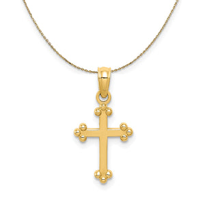 14k Yellow Gold, Dainty, Budded Cross Necklace