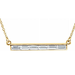 14k Yellow Gold & Diamond 4 or 6 Stone Baguette Bar Necklace, 17 Inch