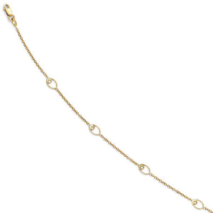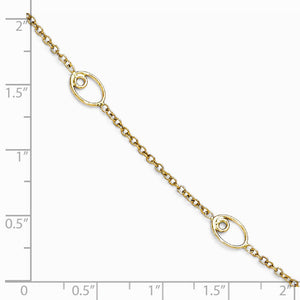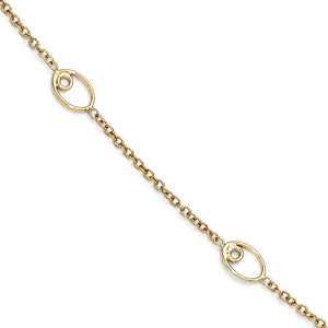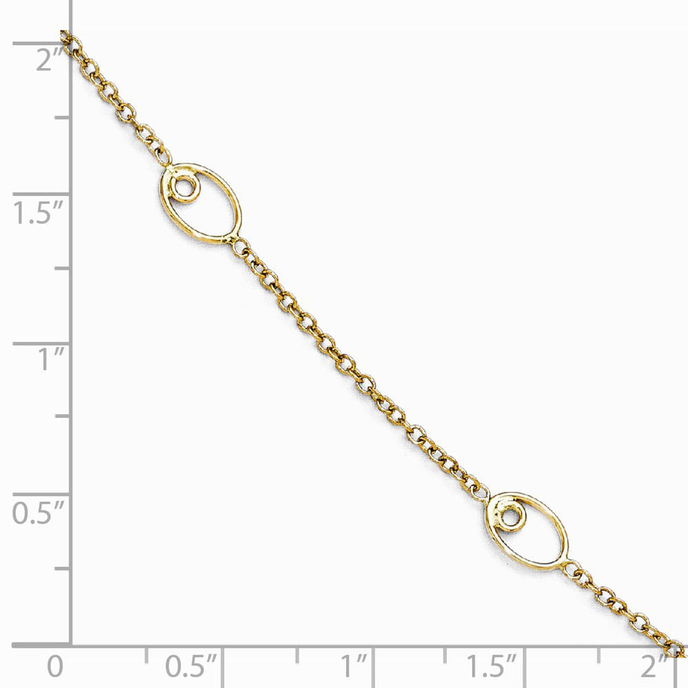 14k Yellow Gold Oval Station Link Anklet, 10-11 Inch