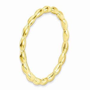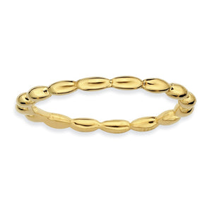• Make it simple and stylish with bands of different textures, finished, widths and colors! This 14k yellow gold plated sterling silver band features a rice bead design with a high polished finish that measures 1. Mm wide. Guaranteed to fit together perfectly with all of the mix and match Stackable Expressions rings.