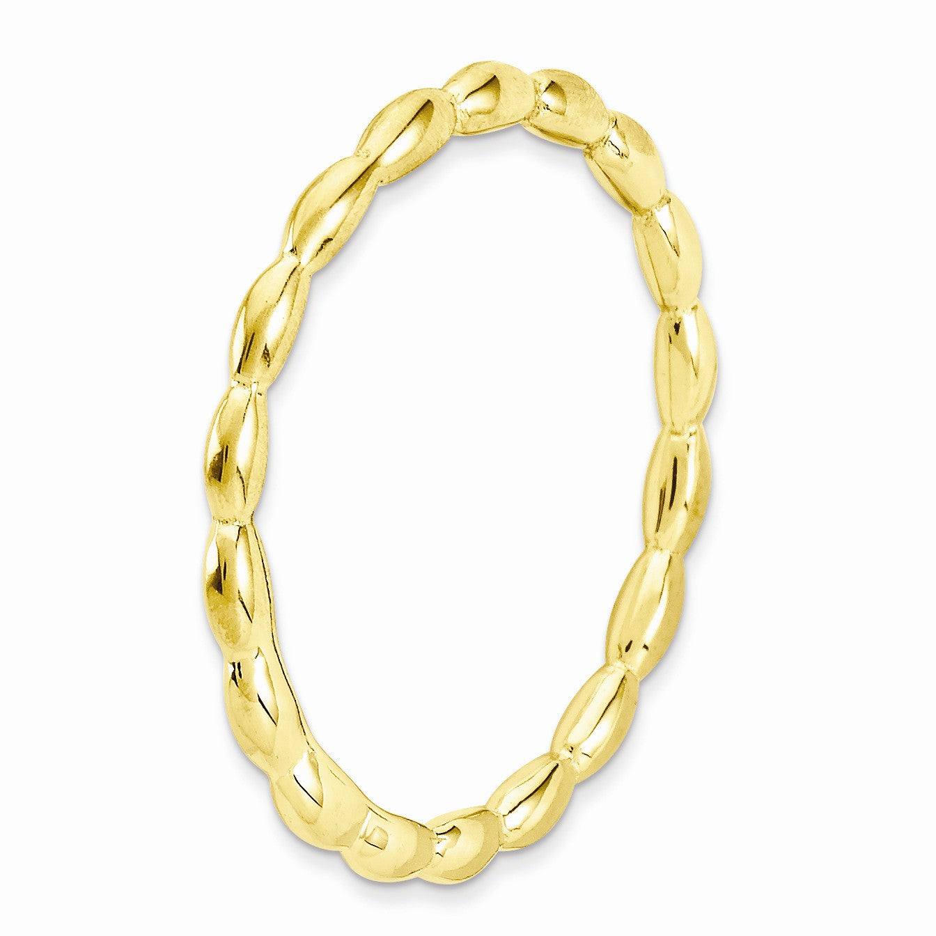 Make it simple and stylish with bands of different textures, finished, widths and colors! This 14k yellow gold plated sterling silver band features a rice bead design with a high polished finish that measures 1. Mm wide. Guaranteed to fit together perfectly with all of the mix and match Stackable Expressions rings.