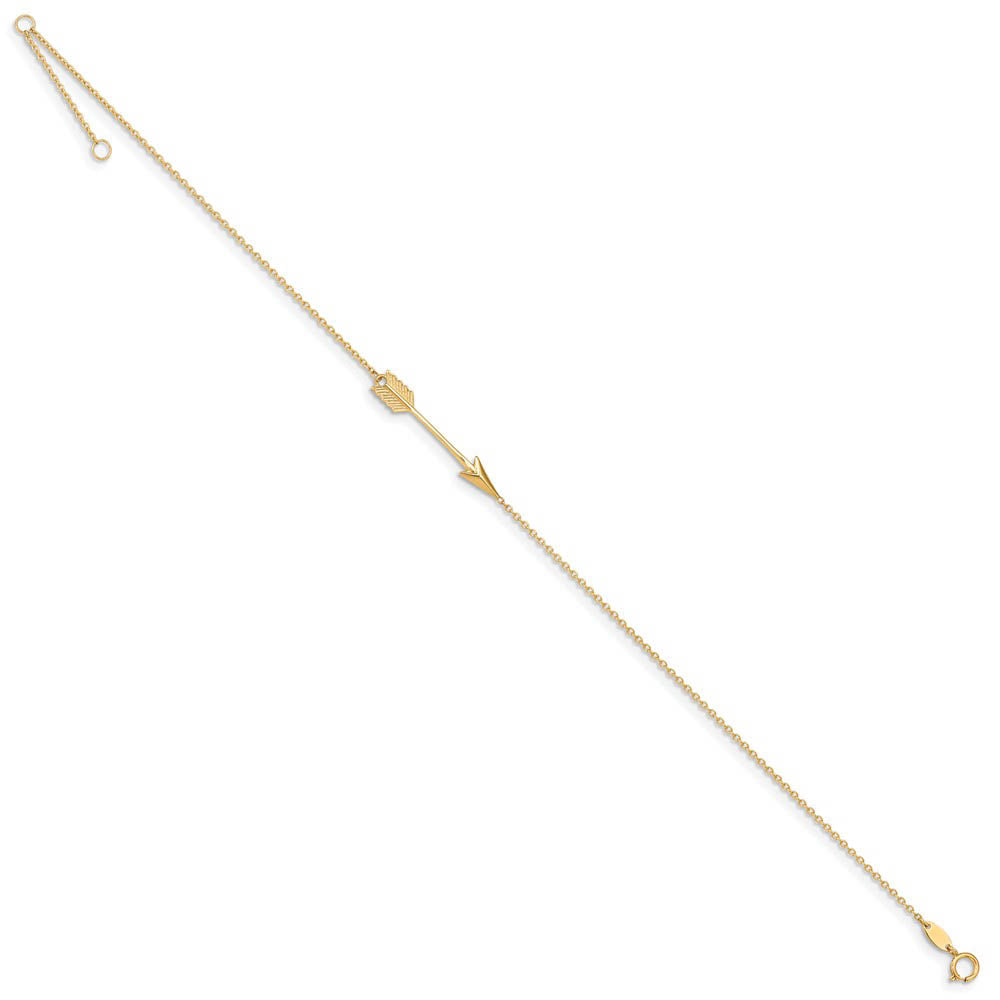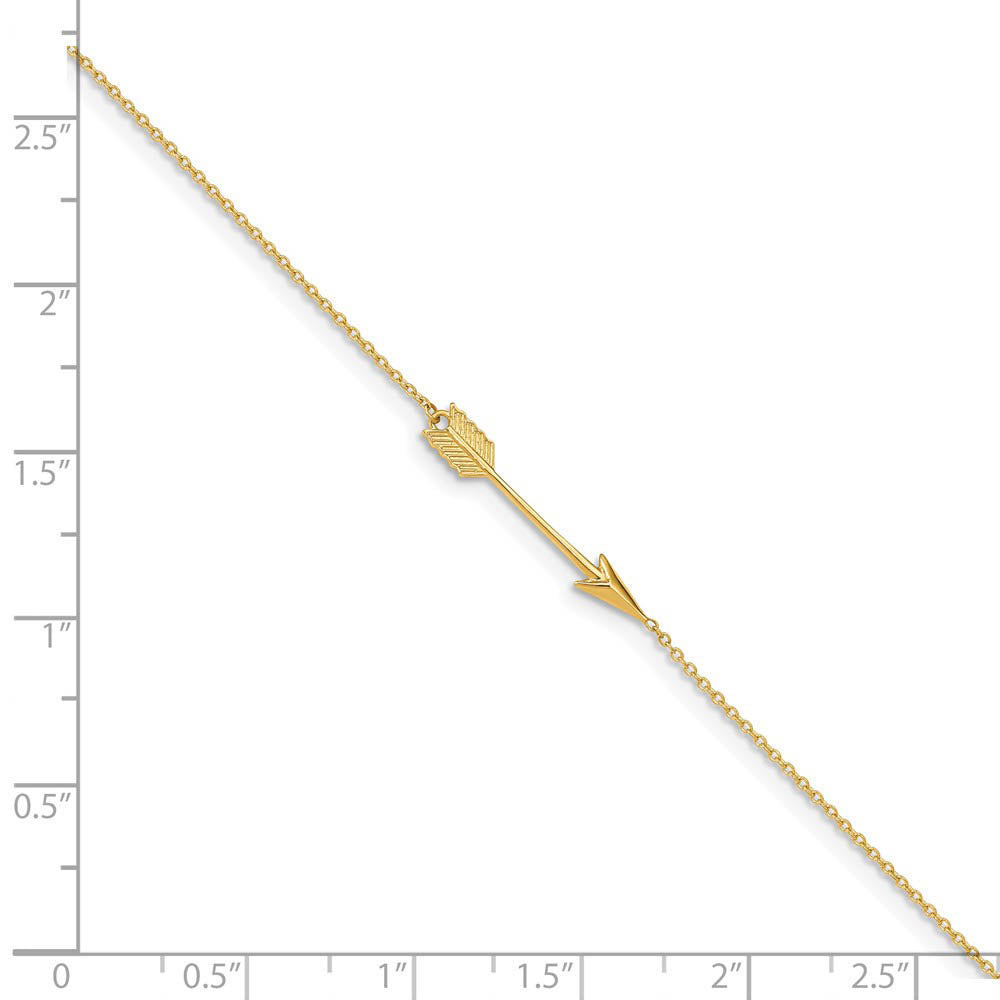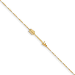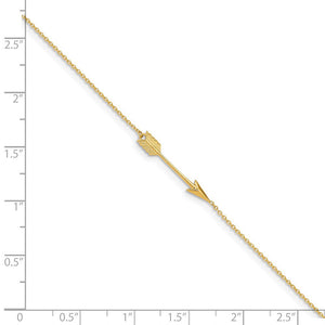 14k Yellow Gold Polished Arrow And 1mm Cable Chain Anklet, 9-10 Inch