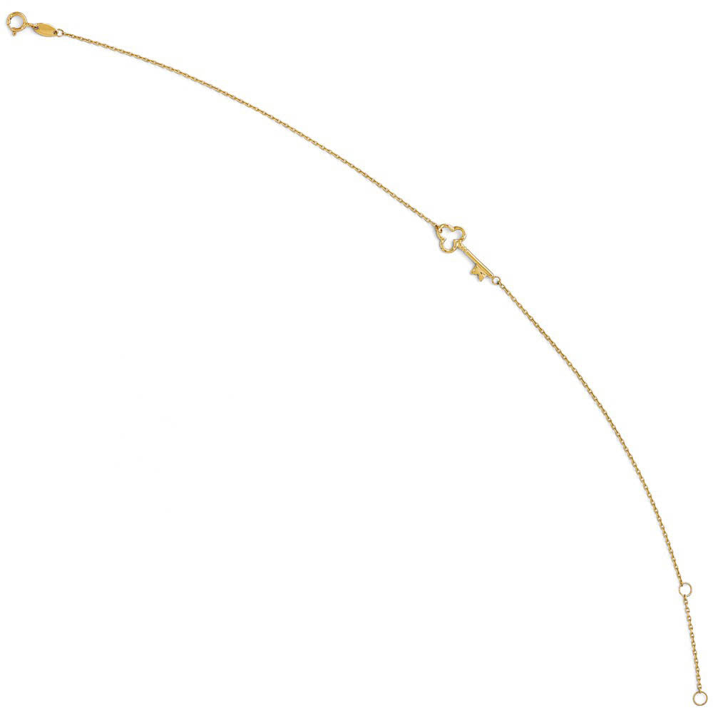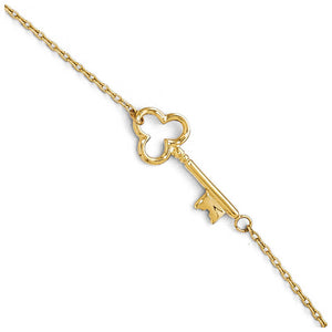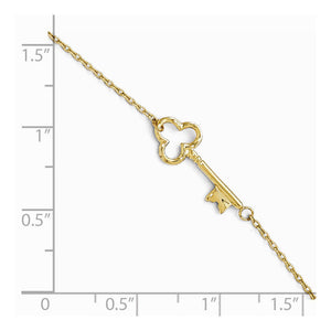 14k Yellow Gold Polished Shamrock Key Anklet, 9-10 Inch