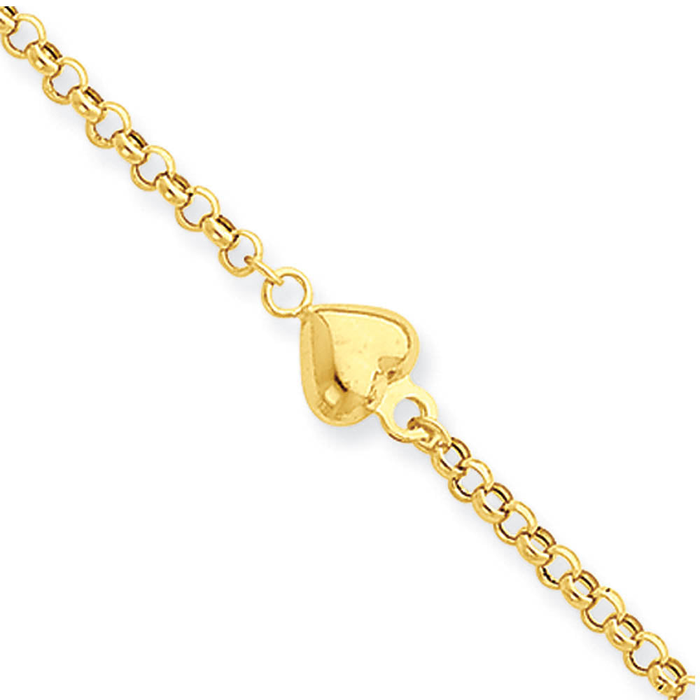 14k Yellow Gold Puff Heart Anklet, 9-10 Inch