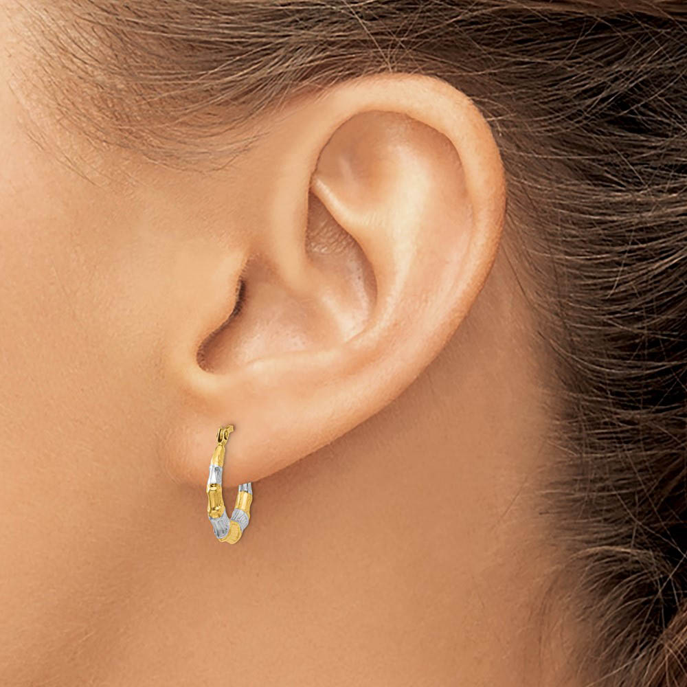 14k Yellow Gold & White Rhodium Bamboo Style Hoop Earrings, 13mm - Black Bow Jewelry Company