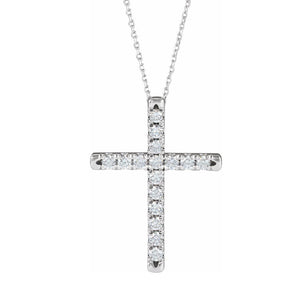 14K Yellow, White or Rose Gold 1 CTW Diamond Cross Necklace, 16-18in