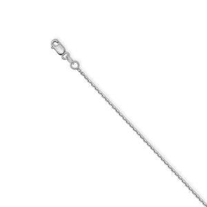 • Indulge in the luxury of rhodium-plated 14k white gold with this sparkling, 1mm width, 18-inch long cable chain necklace enhanced with diamond-cut links. It includes a lobster-claw clasp and the solid link design promises long-lasting beauty.