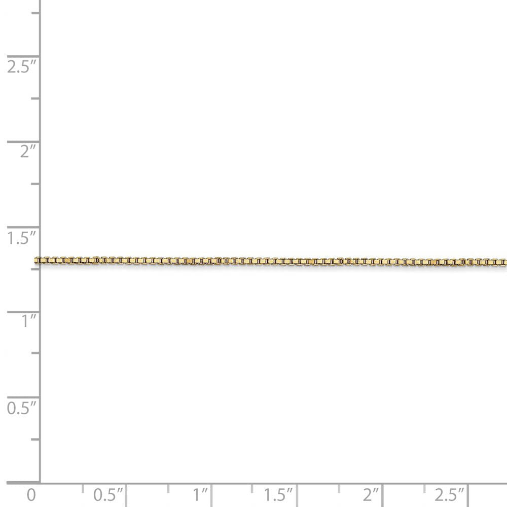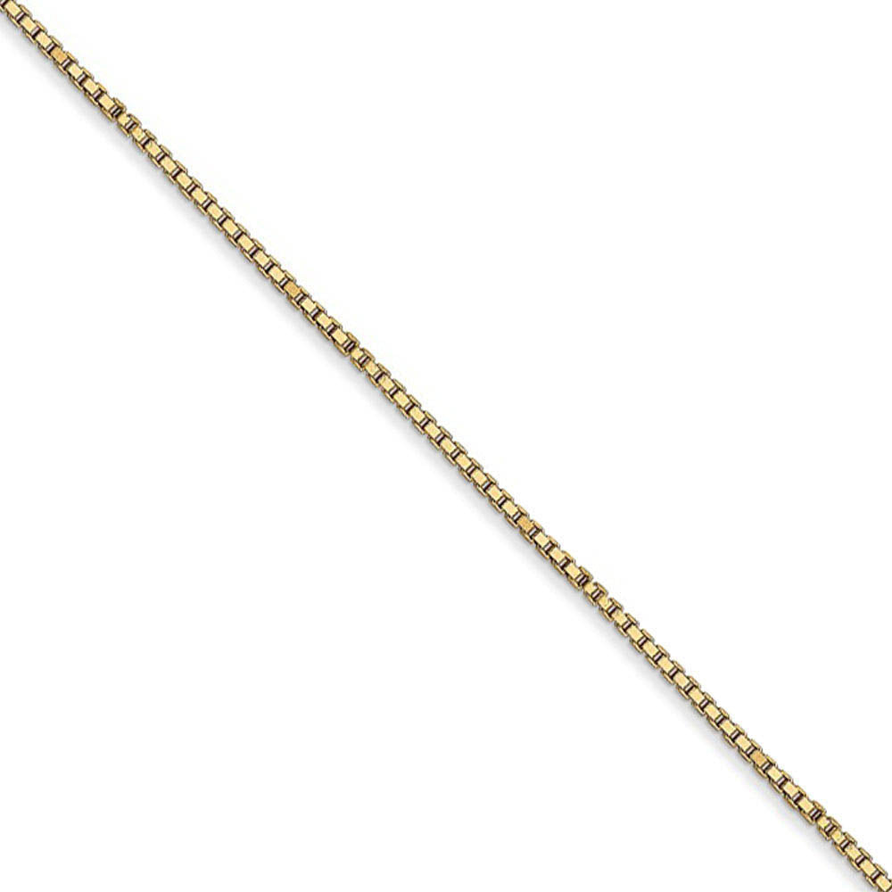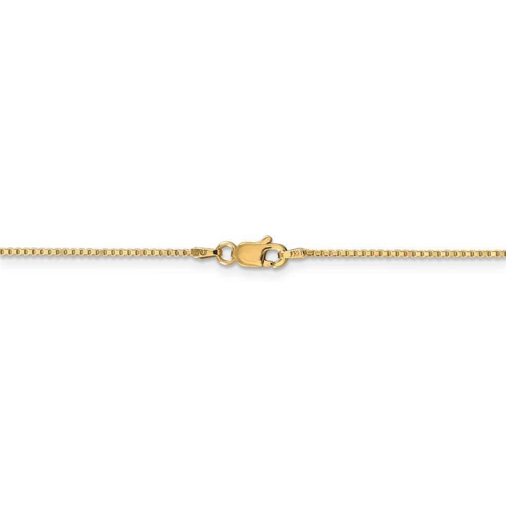 • You cannot go wrong with a traditional box chain; it offers luminous shine with a sturdy flexible design that is less prone to kinking. This 1mm, polished box chain is crafted from 14 karat yellow gold and includes a lobster clasp. 22 inches in length.