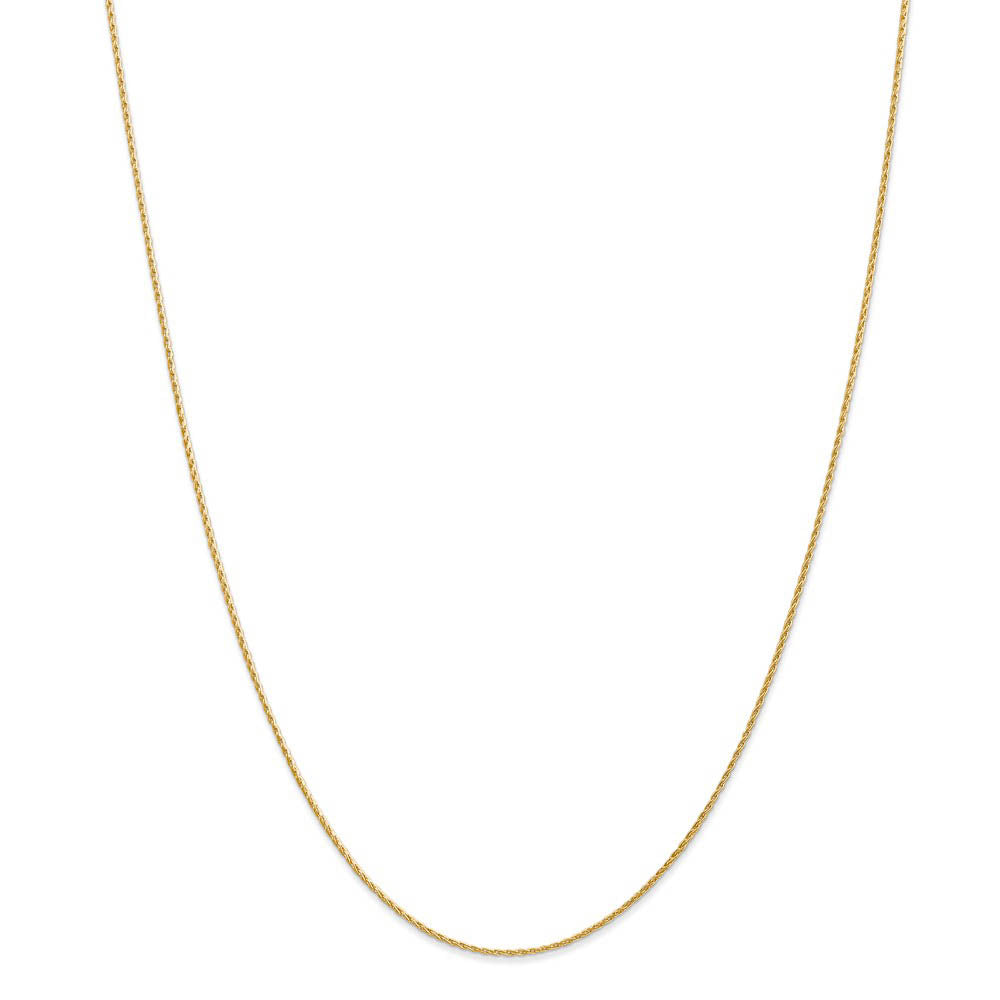 • Complement just about any gold charm or pendant with a round Parisian wheat style chain. This delicate 1mm width chain necklace is fashioned from 14k yellow gold, 18 inches in length and closes with a classic lobster clasp. Made in the U.S.A.
