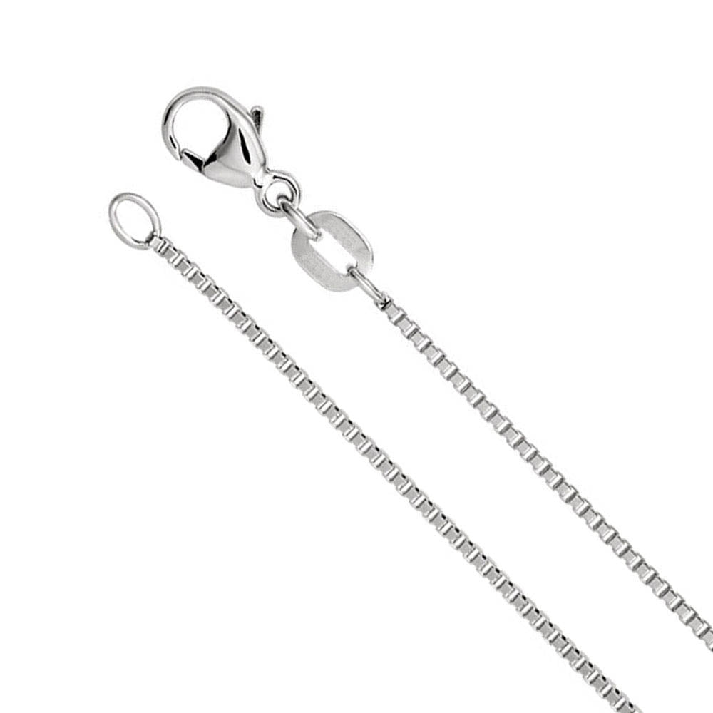 You cannot go wrong with a classic box chain; it offers luminous shine with a sturdy flexible design that is less prone to kinking. This beautiful 1mm delicate pendant chain designed from platinum features a diamond-cut finish and closes with a fancy lobster clasp.