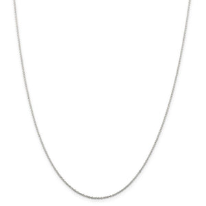 A traditional alternating pattern of solid links connect together to create a classic cable chain made of tarnish resistant, rhodium-plated sterling silver. This delicate pendant chain necklace is 1mm in width by 22-inches in length and closes with a spring ring clasp.