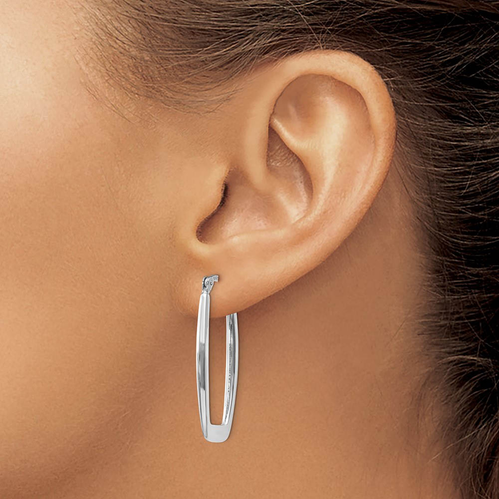 2.25mm, 14k White Gold Tapered Rectangle Hoops, 32mm (1 1/4 Inch)