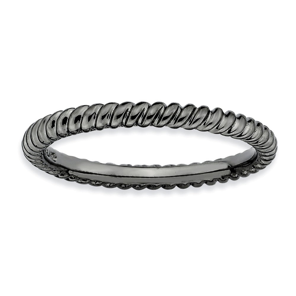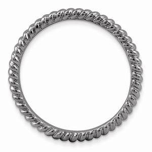 Make it simple and stylish with bands of different textures, finished, widths and colors! This black ruthenium-plated sterling silver band features a twisted design with a high polished finish that measures 2.5mm wide. Guaranteed to fit together perfectly with all of the mix and match Stackable Expressions rings.
