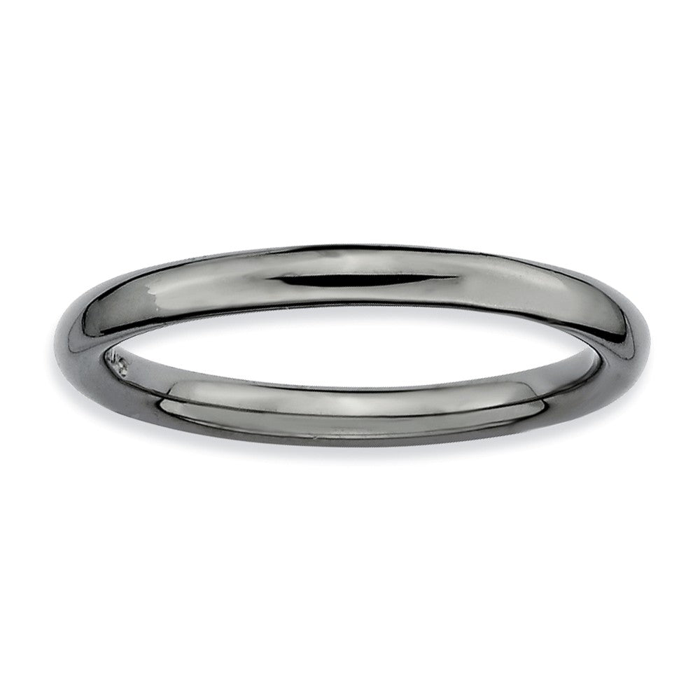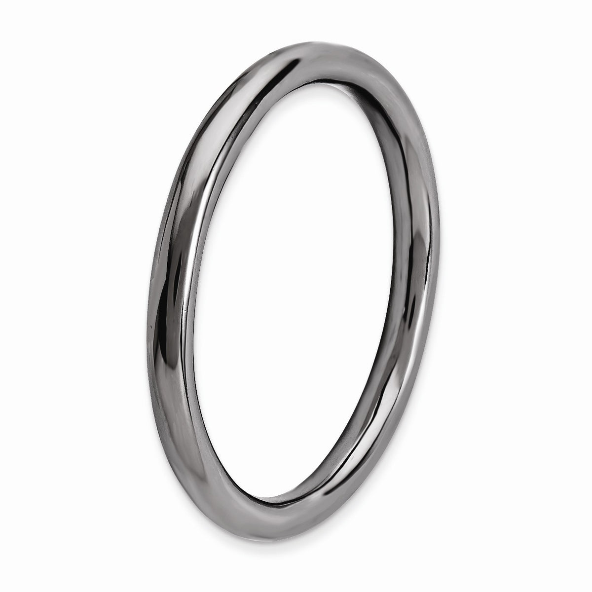 Make it simple and stylish with bands of different textures, finished, widths and colors! This black ruthenium-plated sterling silver band features a smooth rounded design with a high polished finish that measures 2.5mm wide. Guaranteed to fit together perfectly with all of the mix and match Stackable Expressions rings.