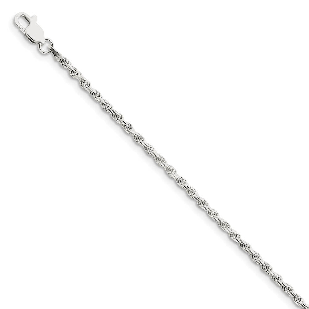 2.25mm Sterling Silver Diamond Cut Solid Rope Chain Anklet or Bracelet - Black Bow Jewelry Company