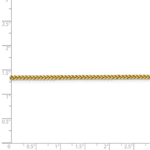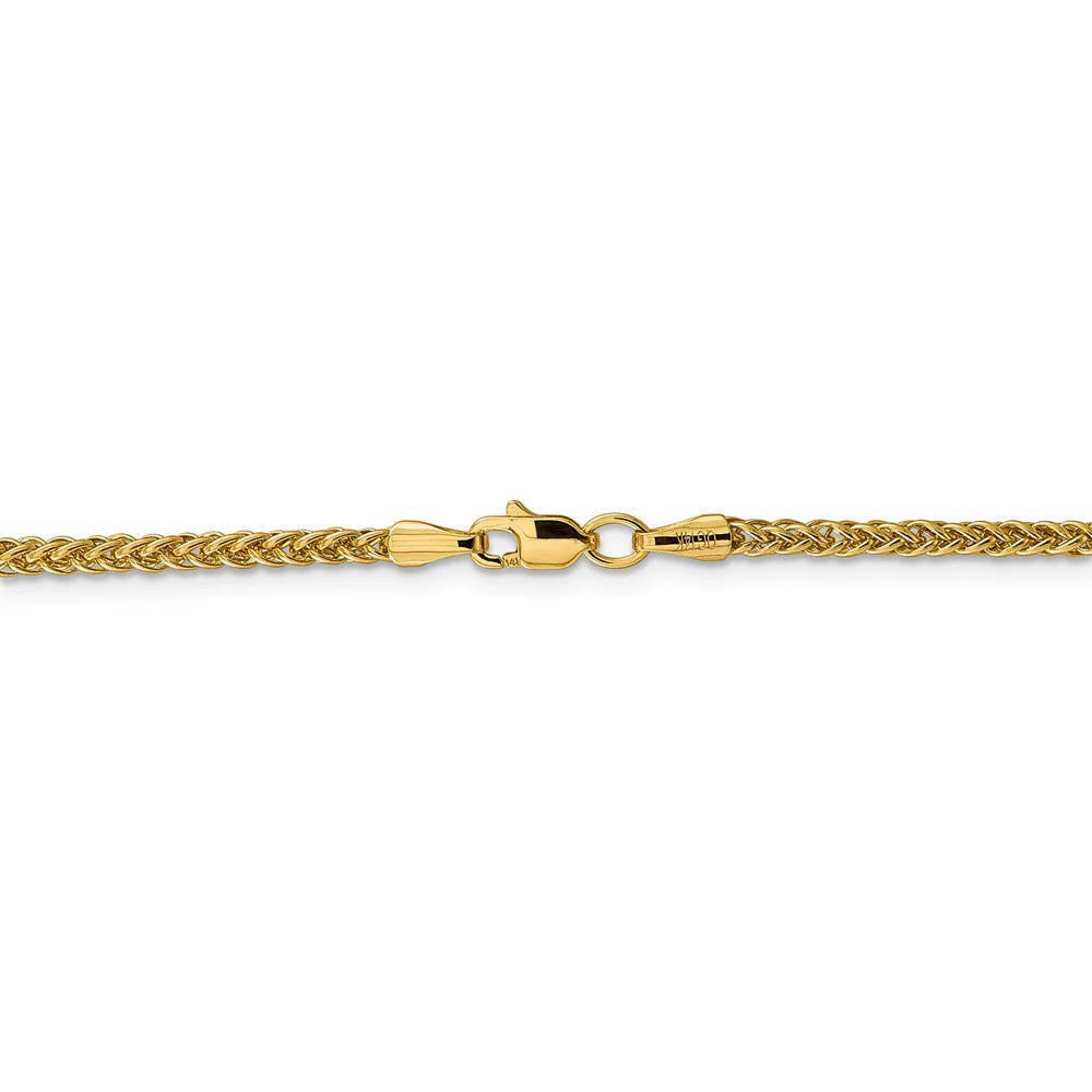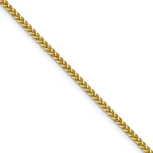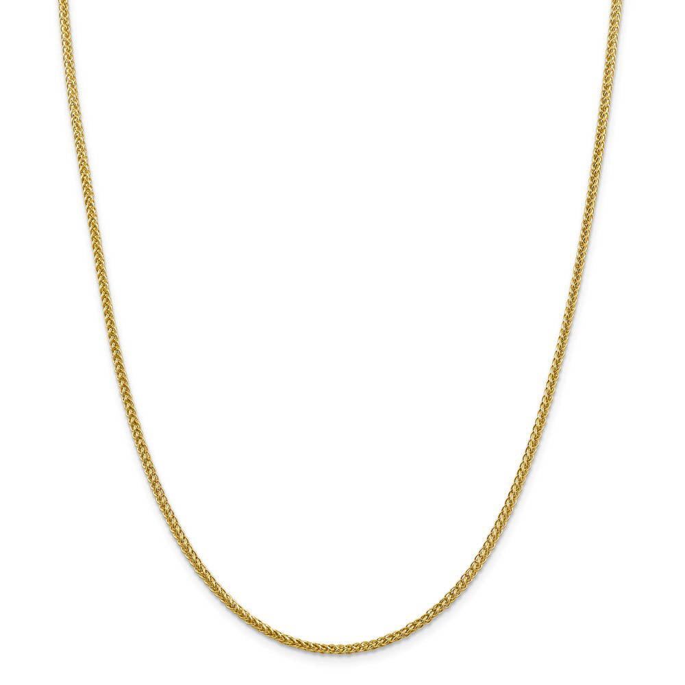 Strands of 14k yellow gold are braided and woven together to create a round wheat pattern for this 2.3mm width, 18-inch long, hollow 3-wire link chain that closes with a lobster-claw clasp. Looks great alone, layered with multiple chains or pair it with a gold charm or pendant to complete your desired look.