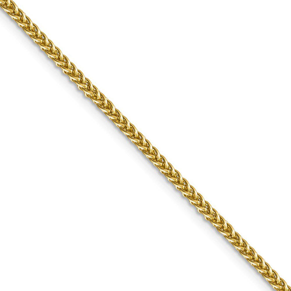 Strands of 14k yellow gold are braided and woven together to create a round wheat pattern for this 2.3mm width, 16-inch long, hollow 3-wire link chain that closes with a lobster-claw clasp. Looks great alone, layered with multiple chains or pair it with a gold charm or pendant to complete your desired look.