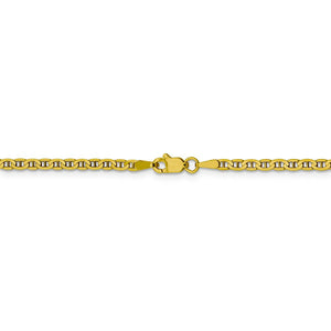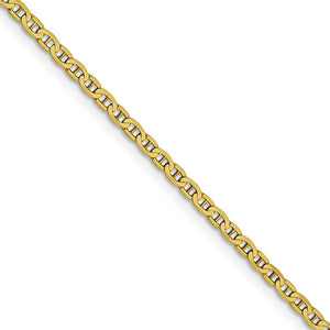 A nautical style design crafted to resemble the cable used to anchor ships, also known as the mariner chain, creates a simple innovative styled necklace for your favorite pendant. This 2.4mm width, 18-inch long flat anchor link chain designed from 10k yellow gold is finished with a lobster claw clasp and ideal for both men and women.