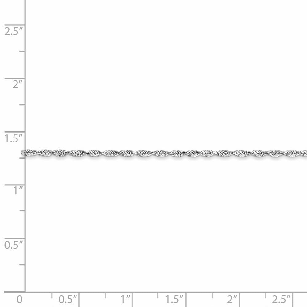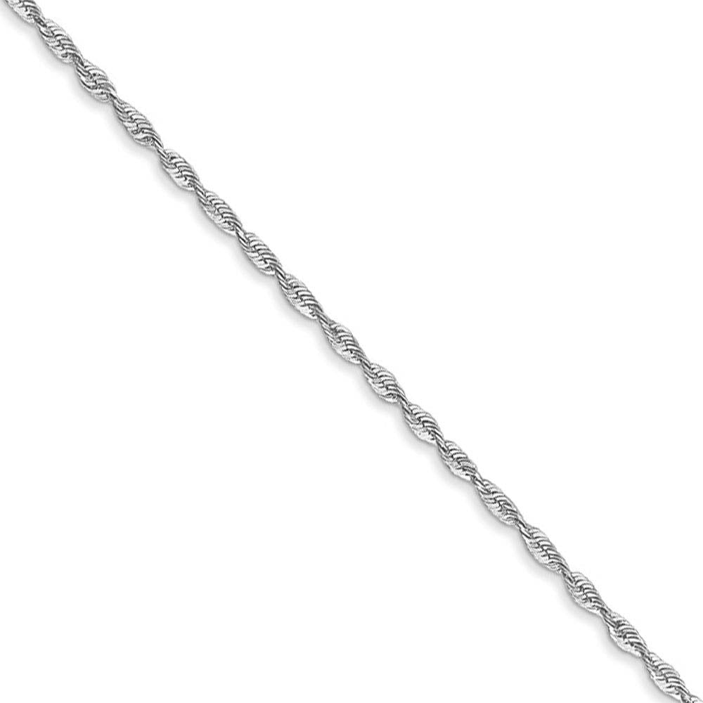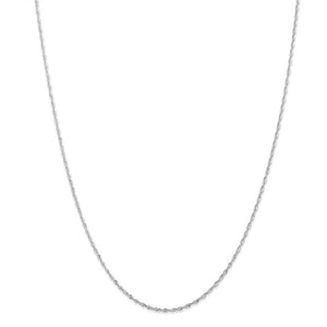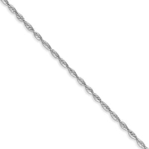 Spiraling rope chains made of 10k white gold enhanced with diamond-cuts are extremely popular because they offer a classic design with maximum shine. Flexible and lightweight, this 2.5mm width, 24-inch long solid link necklace chain fastens with a lobster claw clasp.