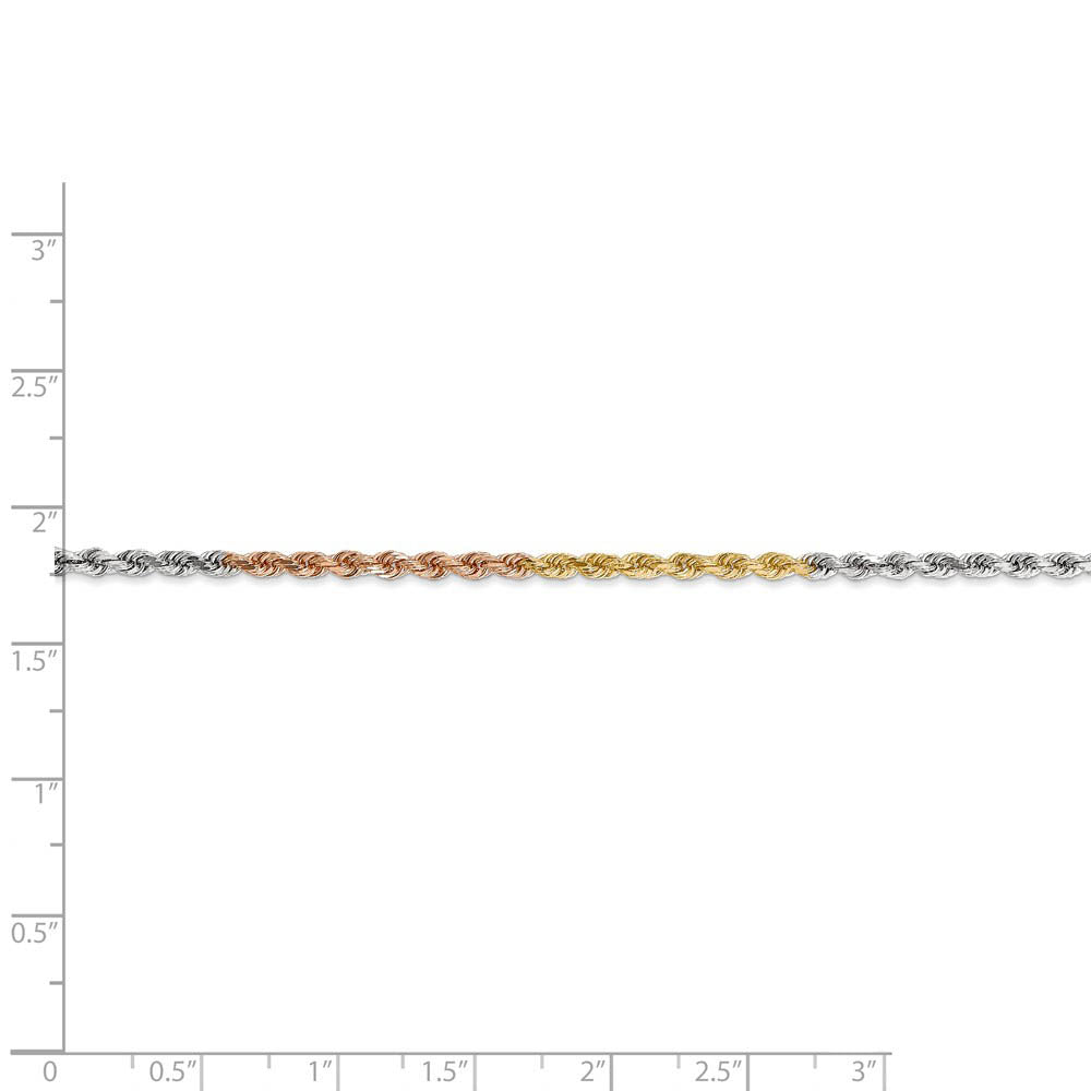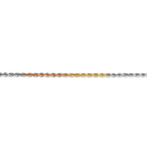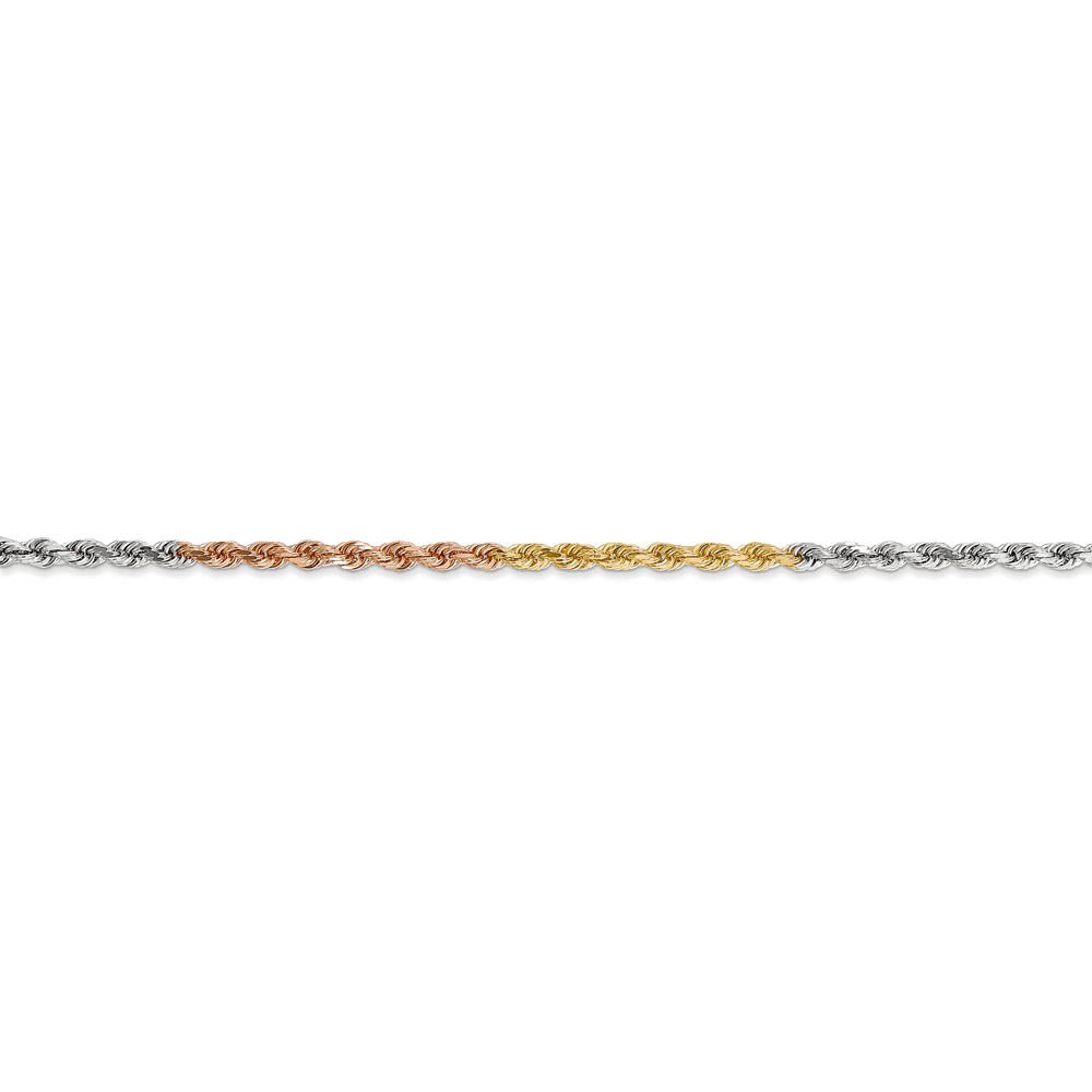 2.5mm, 14k Tri-Color Gold, D/C Solid Rope Chain Bracelet - Black Bow Jewelry Company