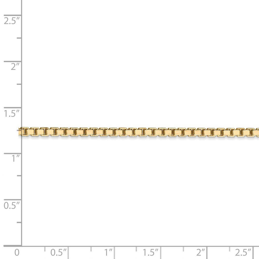 Box chains catch the light with every turn and are beautiful on their own, combined with other chains or paired with your favorite charm. Crafted from polished 14k yellow gold, this classic 2.5mm width 22-inch long box style necklace fastens with a secure lobster clasp.