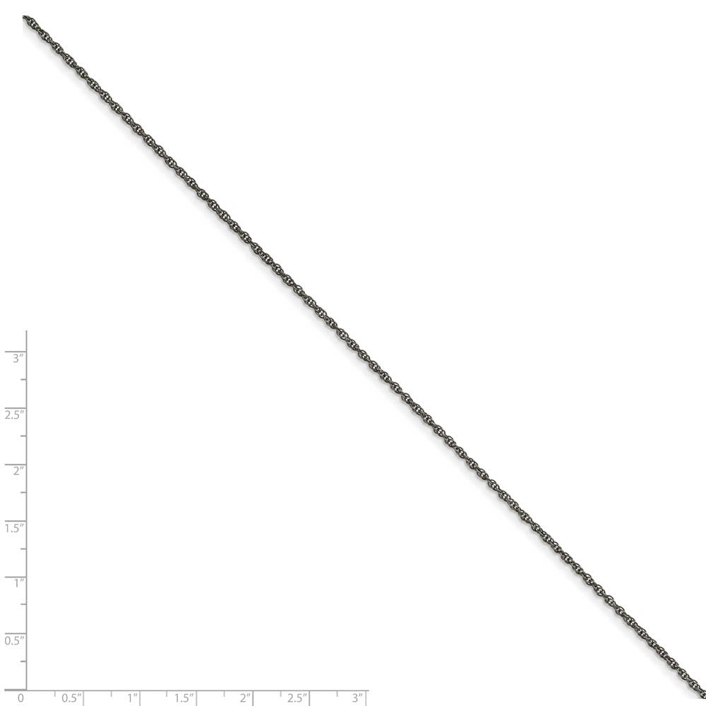 Crafted from 316L stainless steel for its durability and beauty, this distinctive cable style chain features a fancy flat oval link design with an oxidized finish. It measures 2.5mm in width by 16-inches in length and closes with a fancy lobster clasp.