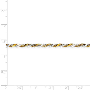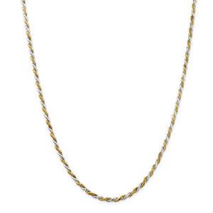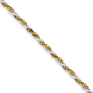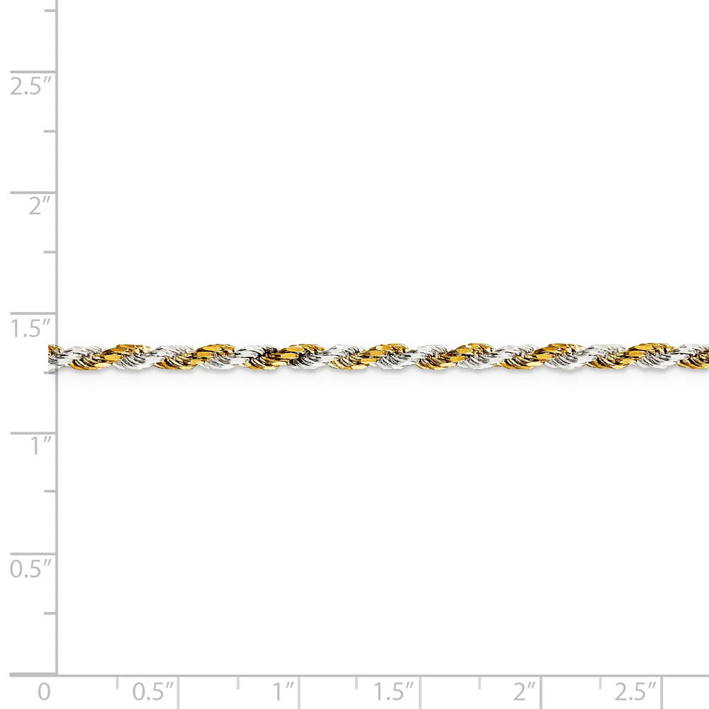 A striking mixture of tone and texture, this diamond cut solid rope chain made from sterling silver and 10k yellow gold plating will add a unique statement of elegance to your everyday look. This two-tone vermeil chain measures 2.5mm in width by 18 inches in length and fastens with a secure lobster-claw clasp. Made in Italy.