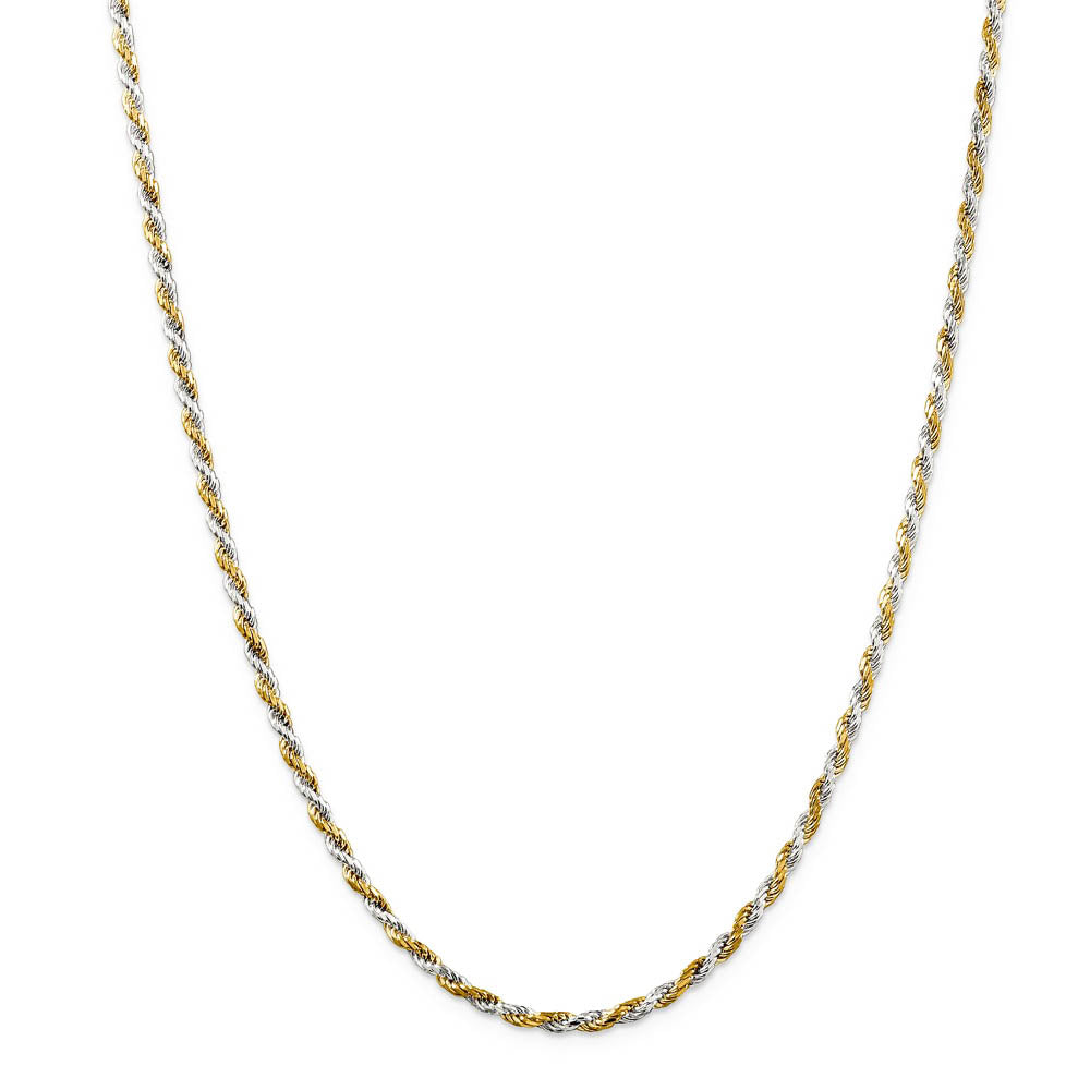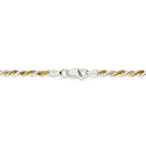 A striking mixture of tone and texture, this diamond cut solid rope chain made from sterling silver and 10k yellow gold plating will add a unique statement of elegance to your everyday look. This two-tone vermeil chain measures 2.5mm in width by 24 inches in length and fastens with a secure lobster-claw clasp. Made in Italy.