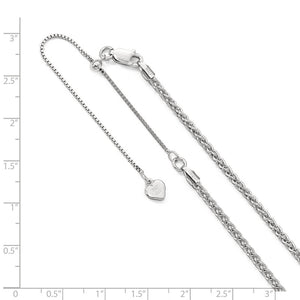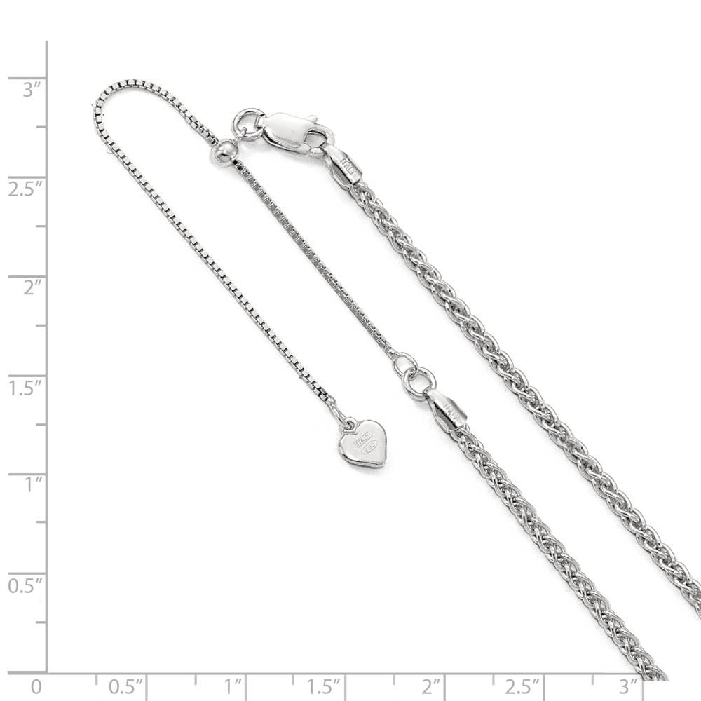 Show off your favorite pendant with this rhodium plated sterling silver spiga chain that is 2.5mm in width and fastens securely with a lobster clasp. It is also adjustable in length thanks to the 4-inch box chain extender with a slide mechanism that allows you to change the length from 18 to 22 inches. Made in Italy.