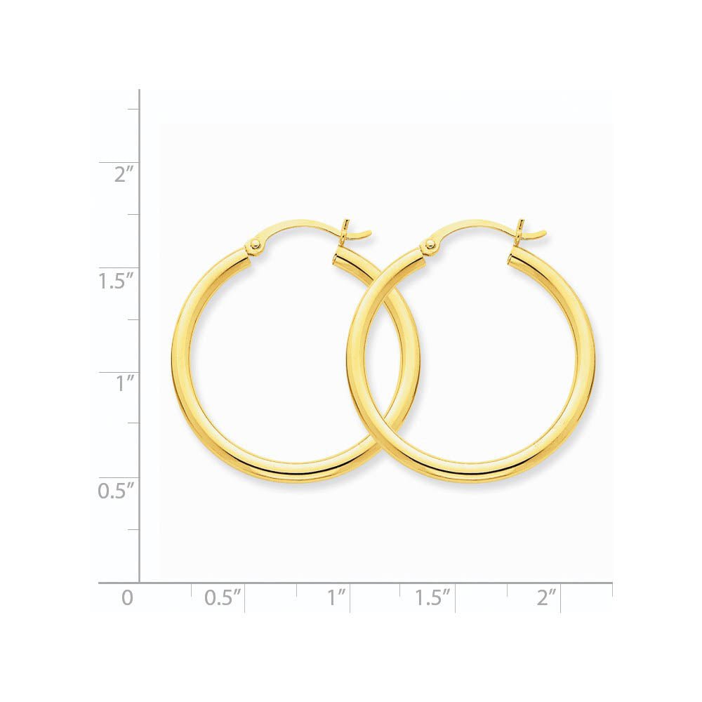 2.5mm x 30mm 14k Yellow Gold Classic Round Hoop Earrings