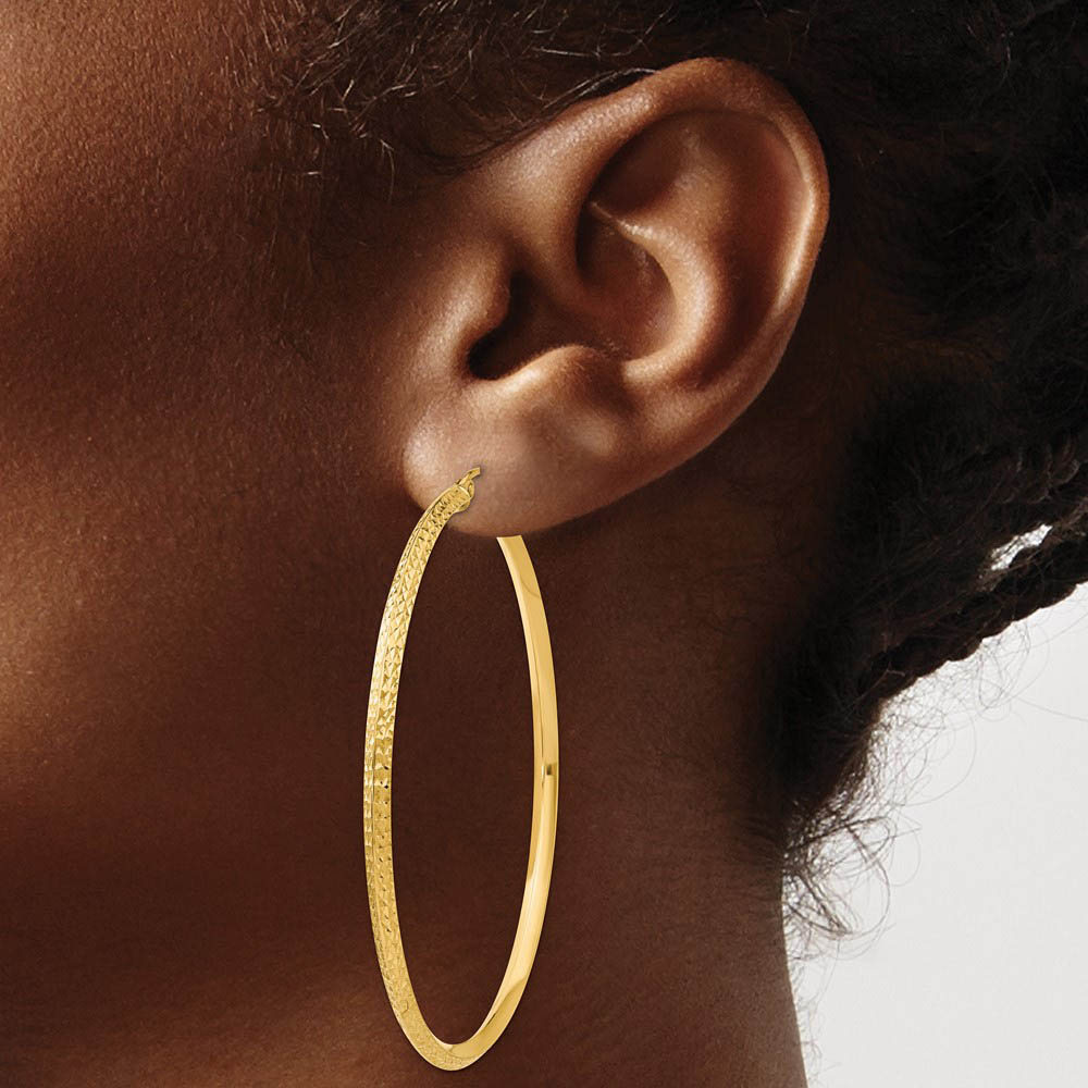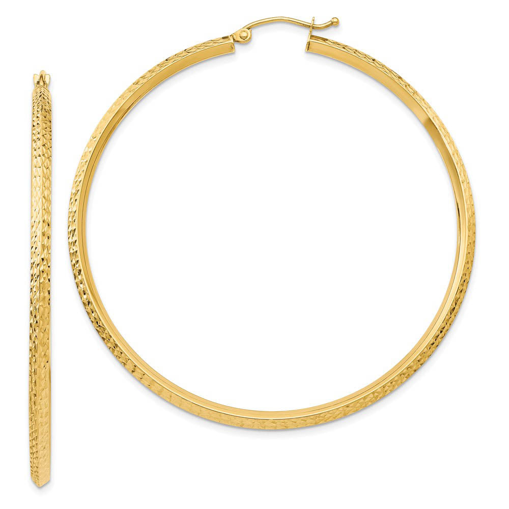 2.5mm x 55mm 14k Yellow Gold Knife Edge Diamond-Cut Round Hoops