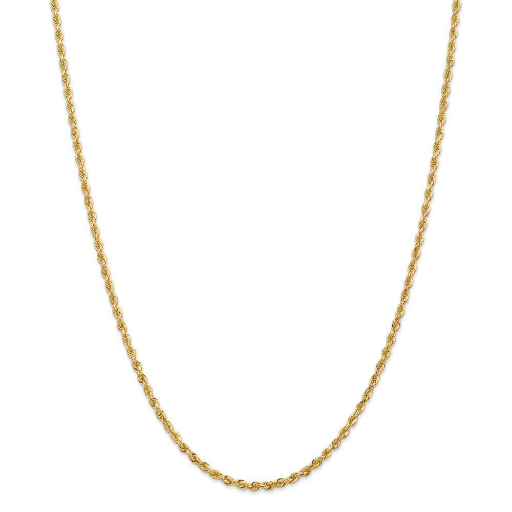 • The radiant luster of 14k yellow gold combined with a diamond-cut finish gives this versatile, spiral rope chain plenty of sparkle. The flexible, solid design makes it perfect for those looking for a multi-talented accessory. This amazing quadruple rope measures 2.75mm in width and closes with a secure, lobster clasp. 30 inches in length.