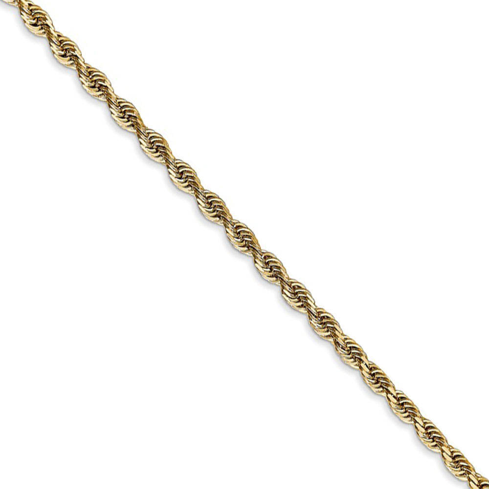 • The radiant luster of 14k yellow gold combined with a diamond-cut finish gives this versatile, spiral rope chain plenty of sparkle. The flexible, solid design makes it perfect for those looking for a multi-talented accessory. This amazing quadruple rope measures 2.75mm in width and closes with a secure, lobster clasp. 22 inches in length.
