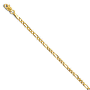 2.75mm 14k Yellow Gold Solid Flat Figaro Chain Bracelet & Anklet