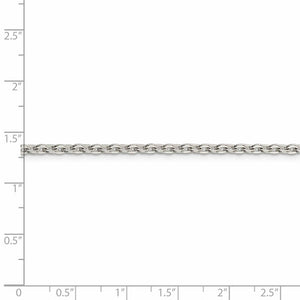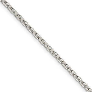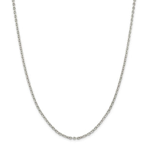 A traditional alternating pattern of flat oval links connect together to create a stylish cable chain made of sterling silver. This polished pendant chain necklace is 2.75mm in width, 20 inches in length and closes with an easy to use spring ring clasp.