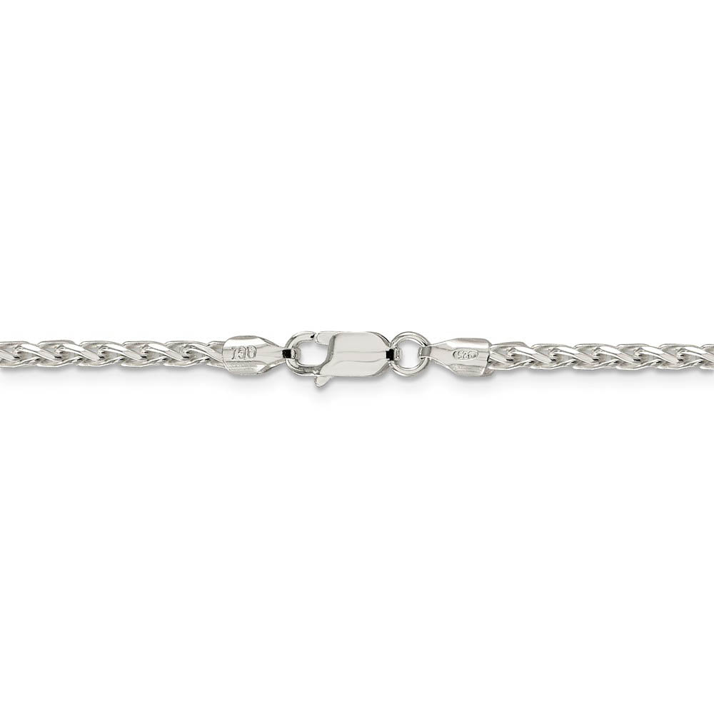 Sterling silver links are plaited together to create a delicate spiga design for this 2.75mm width, 18-inch long chain necklace that closes with a lobster claw clasp. It features a solid link construction, a round profile and a sparkly diamond-cut finish. Made in Italy.