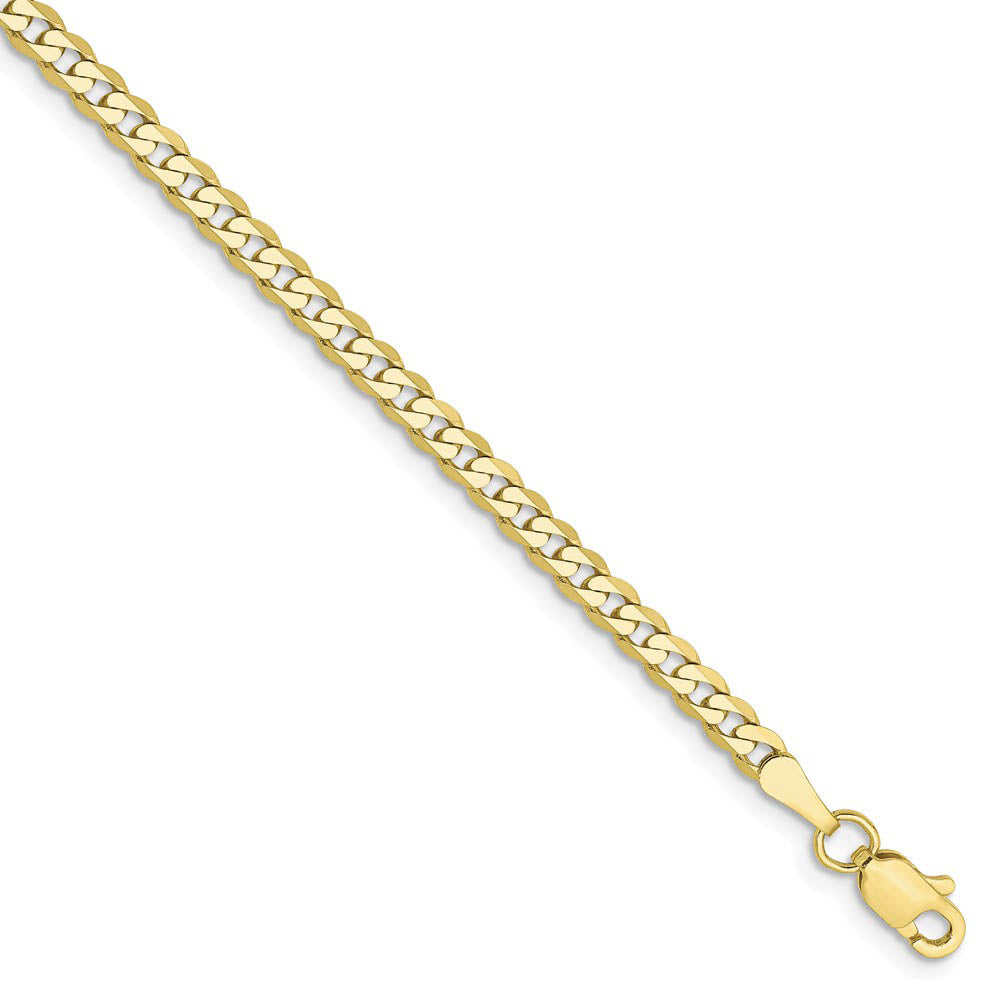 Flat curb links of 10k yellow gold enhanced with beveled edges form an attractive bracelet that looks great alone or layered with multiple chains to complete your desired style. It measures 2.9mm in width, 7-inches in length and closes with a secure lobster-claw clasp to keep it safely in place.