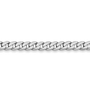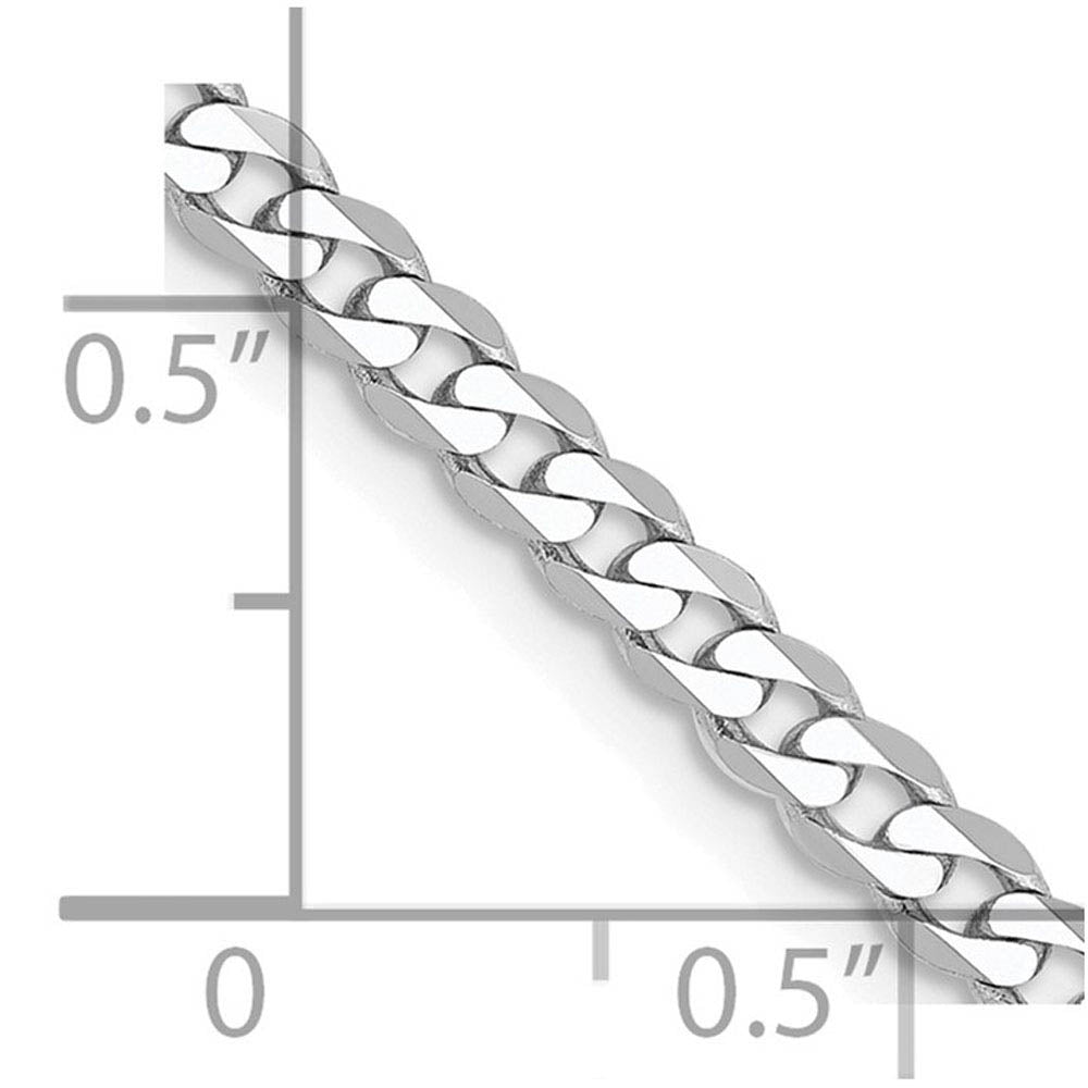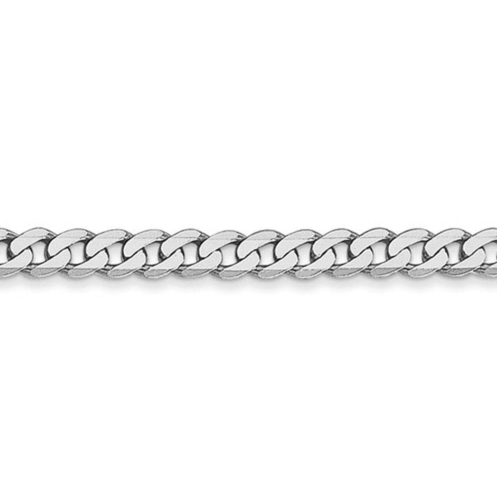Ageless and classic, a curb or Cuban chain is one of the most durable single link styles. This polished necklace chain is created from rhodium-plated 14k white gold and features a solid link, flat beveled curb design that is approximately 2.9mm in width by 26-inches in length and closes with lobster claw clasp.