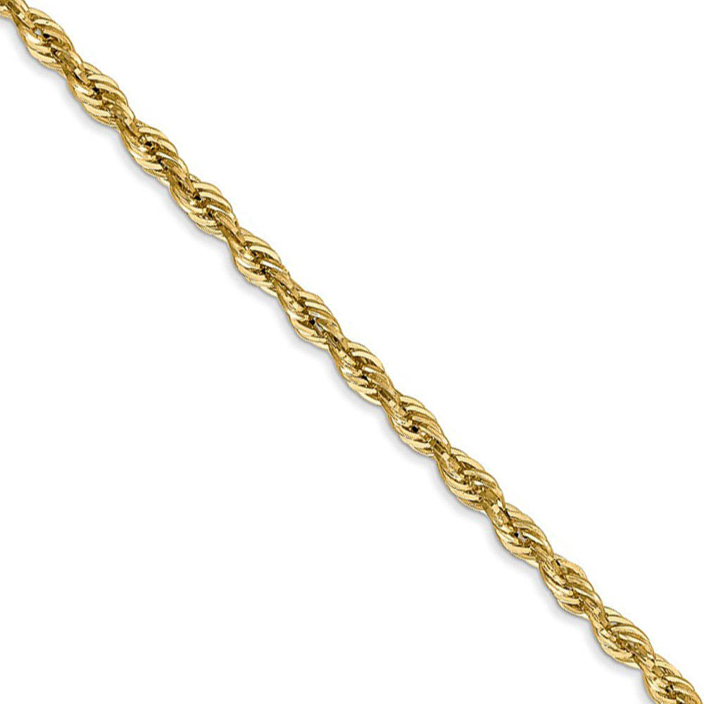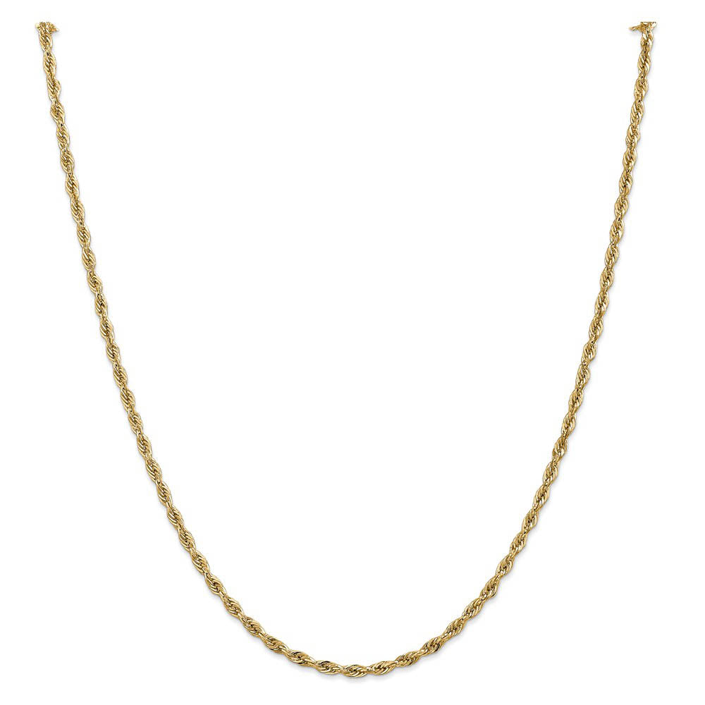 • A classic rope chain is the perfect indulgence for those who appreciate understated sophistication. This 2.8mm wide, 22-inch long polished rope chain necklace fashioned from 14k yellow gold with a hollow link design looks great alone or paired with your favorite pendant.