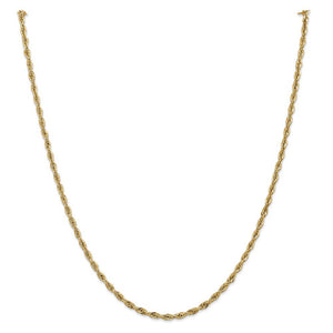 • A classic rope chain is the perfect indulgence for those who appreciate understated sophistication. This 2.8mm wide, 18-inch long polished rope chain necklace fashioned from 14k yellow gold with a hollow link design looks great alone or paired with your favorite pendant.