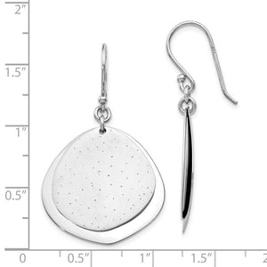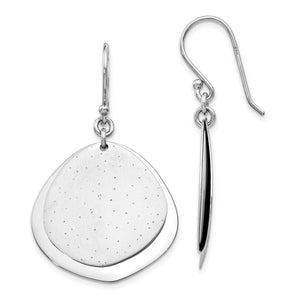 Infuse your style with a touch of sophisticated glamour with these tarnish resistant, rhodium plated sterling silver dangle earrings featuring a two-piece charm design that has a polished and stippled finish. They are approximately 25mm (1 inch) in width by 40mm (1 1/2 inch) in length, which includes the ear wire.