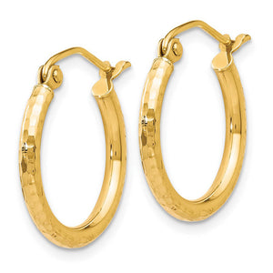 2mm 10k Yellow Gold Diamond Cut Round Hoop Earrings, 17mm (5/8 Inch) - Black Bow Jewelry Company