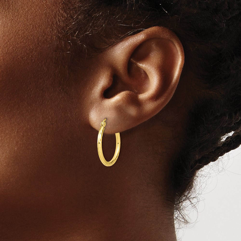 2mm 10k Yellow Gold Diamond Cut Round Hoop Earrings, 20mm (3/4 Inch)