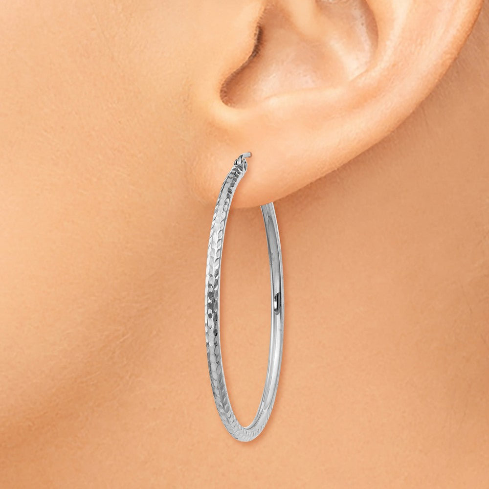 2mm, 14k White Gold Diamond-cut Hoops, 40mm (1 1/2 Inch)